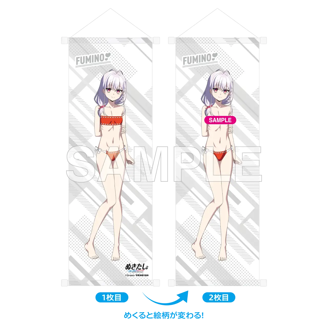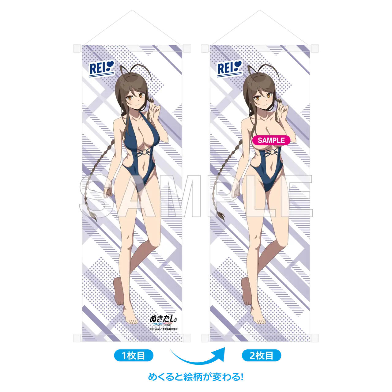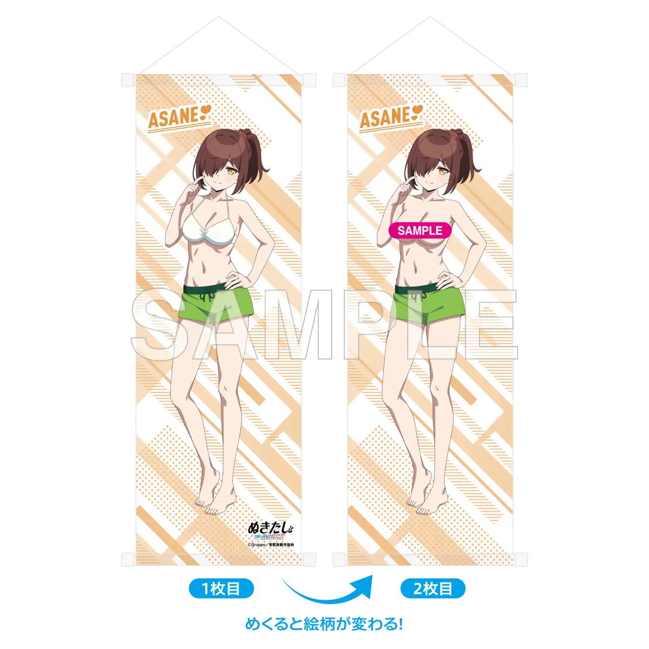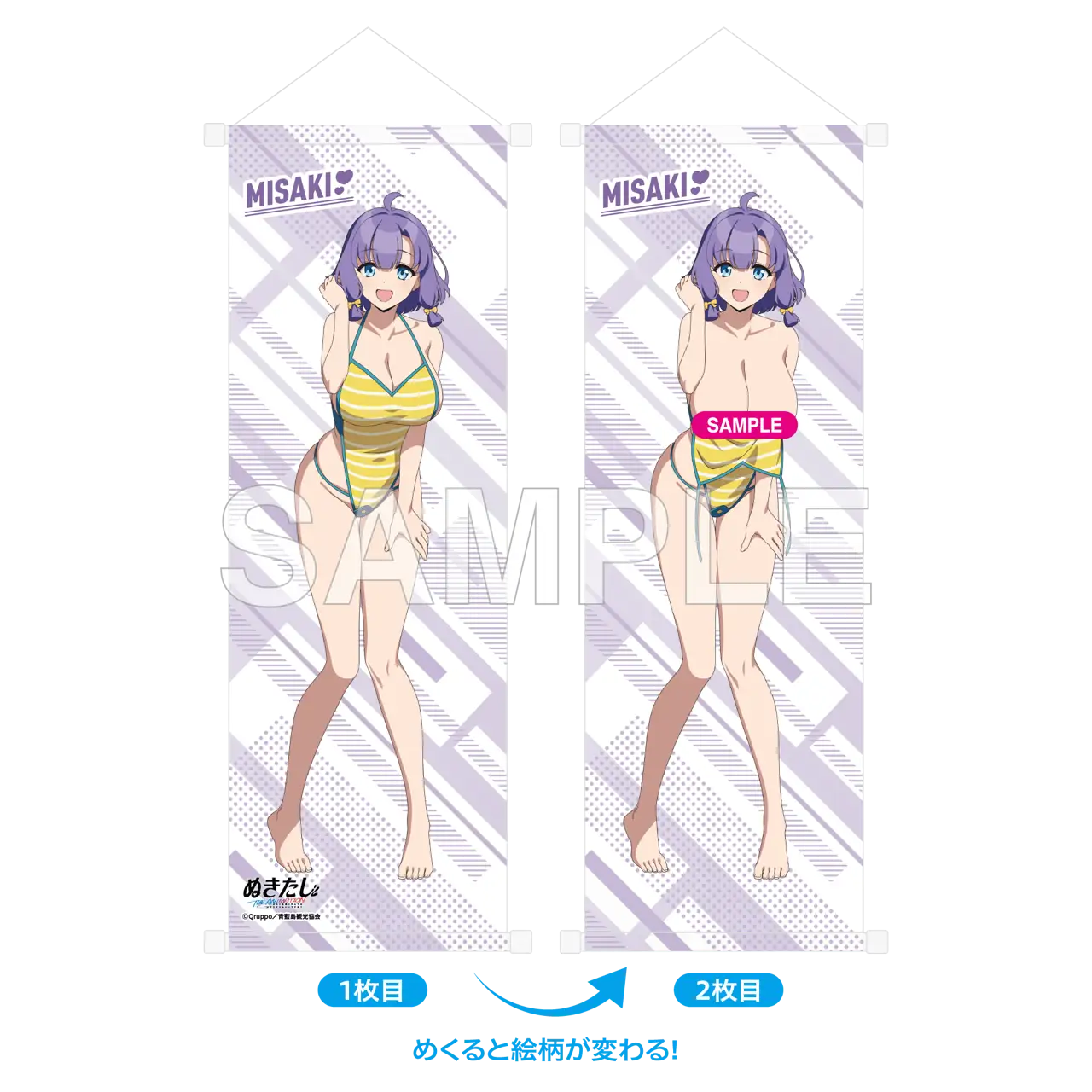 【価格】 3,300円(税込) 【仕様】 全1種 サイズ:B2半裁 材質:レアスエード 【商品説明】 「ぬきたし THE ANIMATION」からイベントビジュアルを使用しためくれるハーフタペストリーが登場です。1枚めくると別の絵柄を見ることができます。